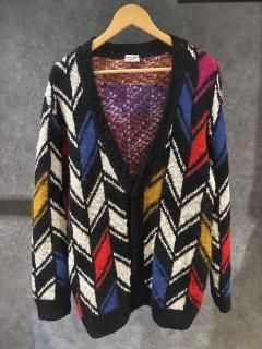 サンローランパリ ウールモヘヤインターシャカーディガン ブラック×マルチ サイズM B品
