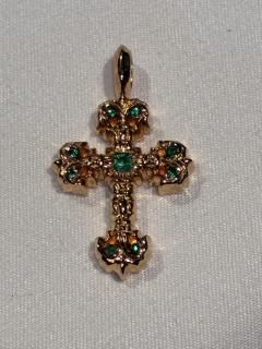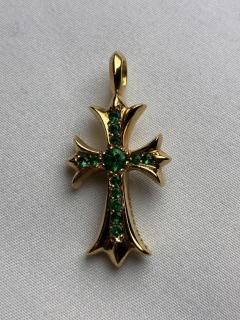 クロムハーツ ネックレストップ タイニーフィリグリークロス PAVEエメラルド 22K A品