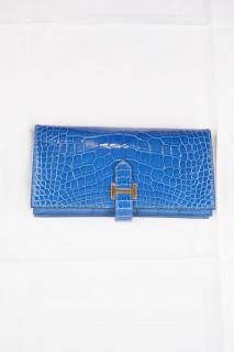 エルメス 財布 ベアンスフレ アリゲーター ブルーゼリージュ ゴールド金具 Z刻印 箱付き S品