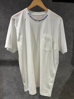 クロムハーツ 半袖Tシャツ ネックロゴプリント ホワイト×ブルー Lサイズ S品