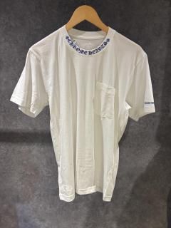 クロムハーツ 半袖Tシャツ ネックロゴプリント ホワイト×ブルー Mサイズ S品