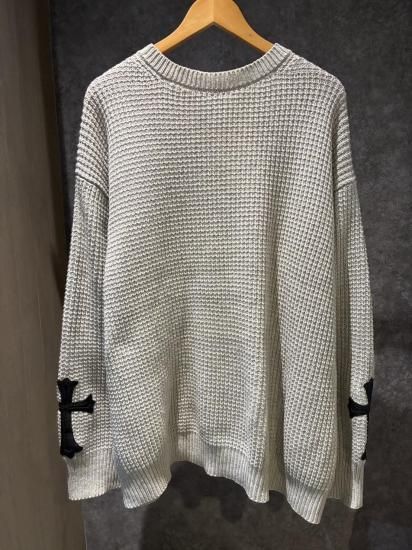 クロムハーツ カシミヤニットセーター ワイノット 袖クロスパッチ グレー B品 Mサイズ