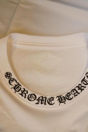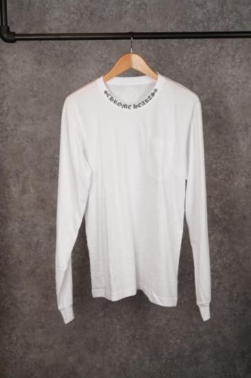 クロムハーツ ⾧袖Tシャツ ネックロゴプリント ホワイト×ブラック Lサイズ S品