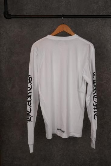 クロムハーツ ⾧袖Tシャツ ネックロゴプリント ホワイト×ブラック Lサイズ S品