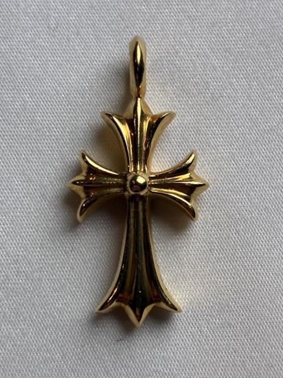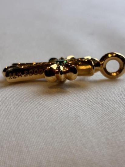クロムハーツ ネックレストップ タイニーファットクロス PAVEエメラルド 22K B品