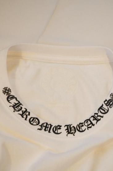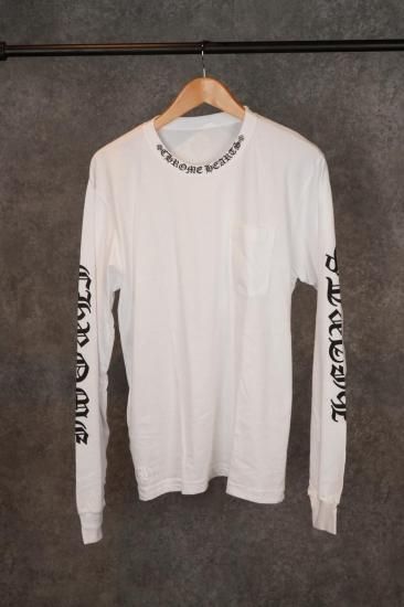 クロムハーツ ⾧袖Tシャツ ネックロゴプリント ホワイト×ブラック Lサイズ S品
