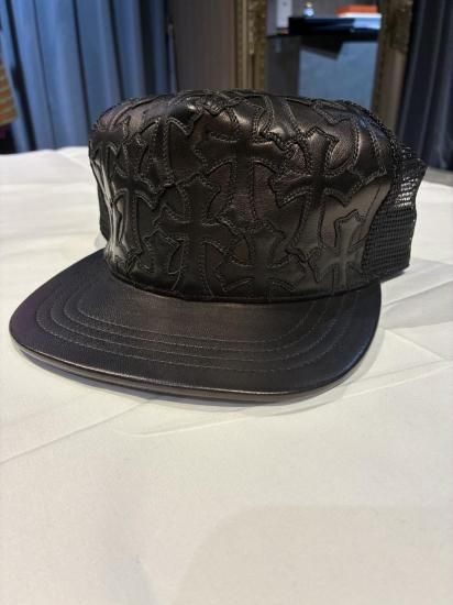 クロムハーツ トラッカーキャップ フルセメタリークロス レザー ブラック S品