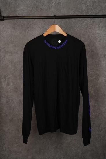 クロムハーツ ⾧袖Tシャツ ネックロゴプリント ブラック×パープル Lサイズ S品