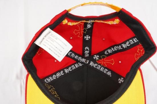 クロムハーツ ベースボールキャップ クロスパッチ刺繍イエロー 5パネル レッド S品