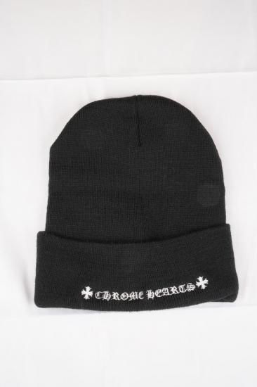 クロムハーツ ニットキャップ ビーニー リップアンドタン レザーパッチ ブラック S品
