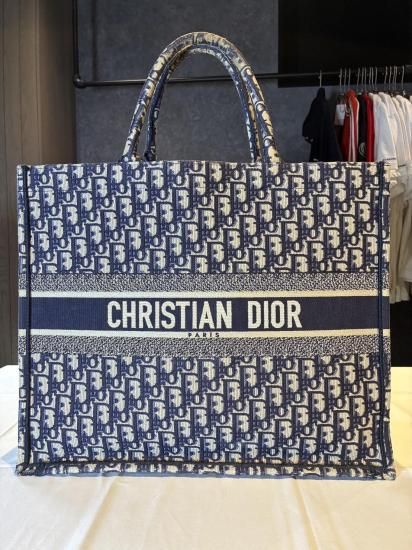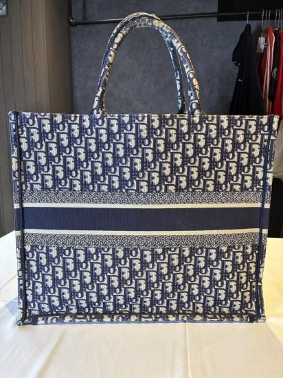 Dior バッグ ブックトート ラージ オブリーク柄 ネイビー B品