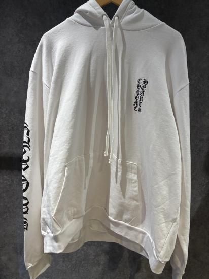 クロムハーツ プルオーバーパーカー バーティカルロゴ アームロゴプリント ホワイト XLサイズ S品