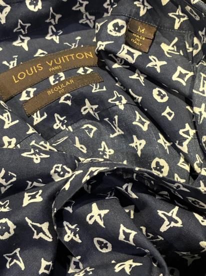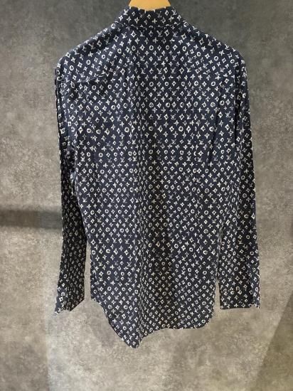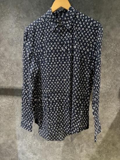 ルイヴィトン シャツ モノグラム総柄 ネイビー×ホワイト Mサイズ AB品