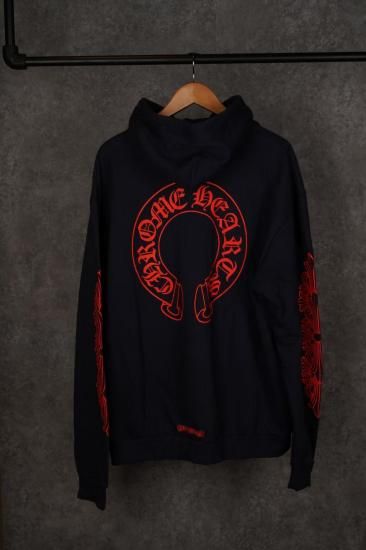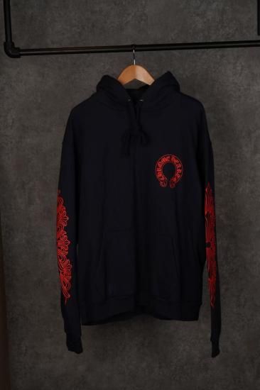 クロムハーツ プルオーバーパーカー ホースシュー フローラルクロス ネイビー×レッド XLサイズ S品 肩幅58.5×身幅67×着丈70.5×袖丈70
