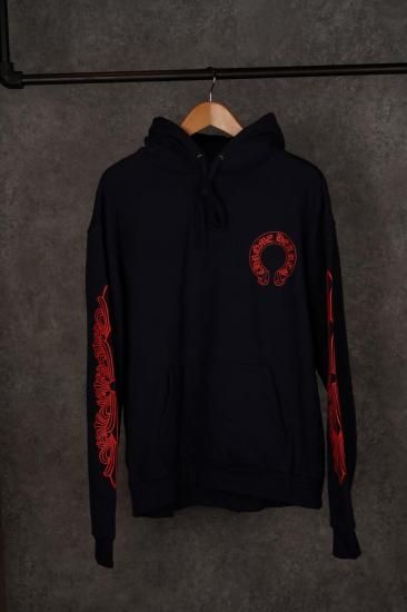 クロムハーツ プルオーバーパーカー ホースシュー フローラルクロス ネイビー×レッド Lサイズ S品 肩幅58.5×