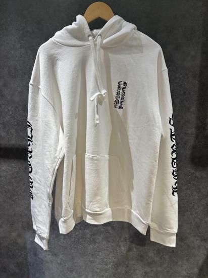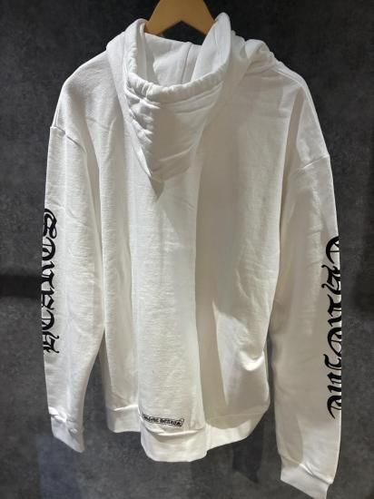 クロムハーツ プルオーバーパーカー バーティカルロゴ アームロゴプリント ホワイト Lサイズ S品