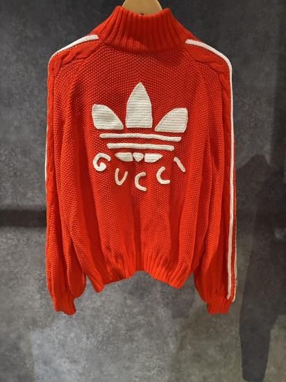 グッチ アディダス ジップアップニット バックロゴ リネン レッド Lサイズ A品