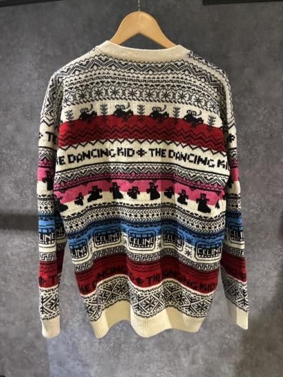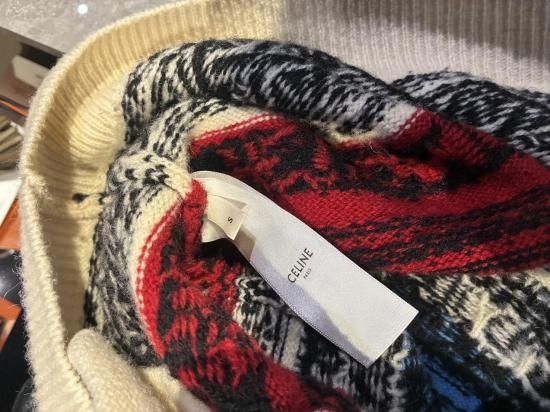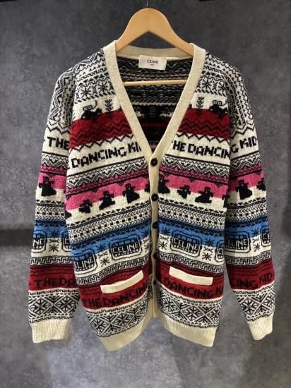 セリーヌ ジャガードカーディガン ウール ホワイト×レッド×ピンク Sサイズ B品