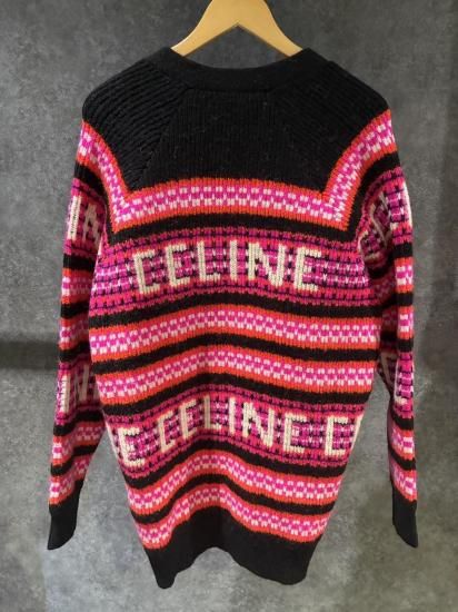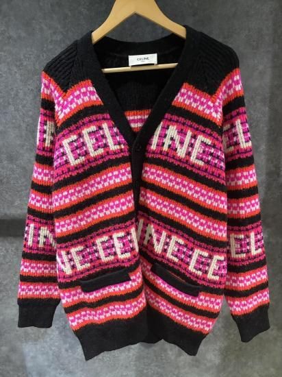 セリーヌ ジャガードカーディガン ピンク×ブラック XSサイズ S品