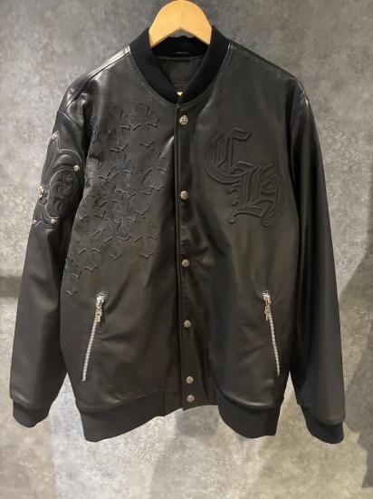 クロムハーツ オールレザーレターマン ジャケット ブラック XLサイズ B品