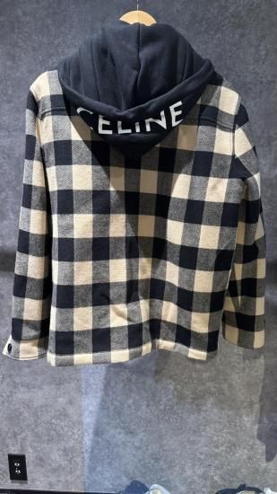 セリーヌ オーバーサイズシャツ ロゴフード ベージュ×ブラック 46 AB品