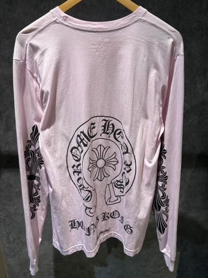 クロムハーツ 長袖Tシャツ ホースシュー フローラルクロス 香港限定 ピンク×ブラック Lサイズ AB品