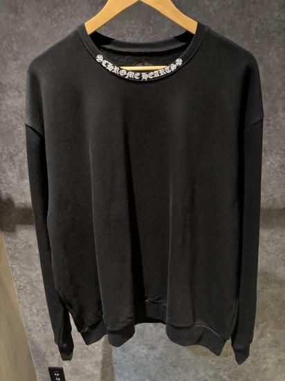 クロムハーツ スウェットトレーナー ネックロゴプリント ブラック×ホワイト Lサイズ S品