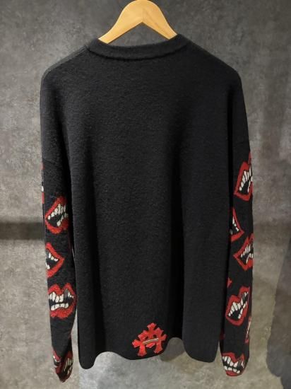 クロムハーツ カシミヤニットセーター チョンパージャガード ブラック×レッド Lサイズ B品