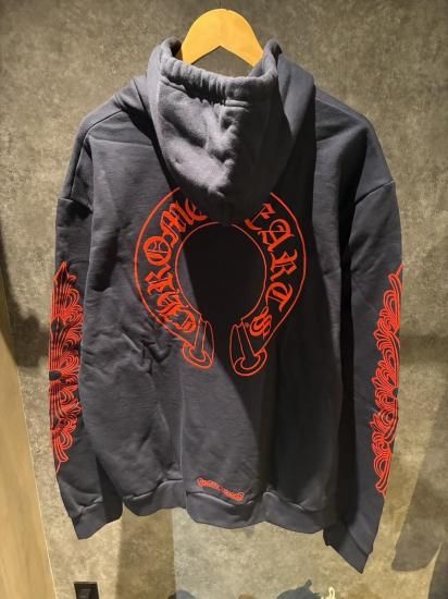 クロムハーツ プルオーバーパーカー ホースシュー フローラルクロス ネイビー×レッド Lサイズ S品