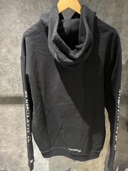 クロムハーツ プルオーバーパーカー バーティカルロゴ アームロゴプリント ブラック×シルバー Lサイズ S品